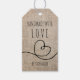 Handgefertigt mit Liebe Doodle Rustic Burlap Geschenkanhänger