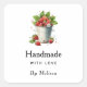 Handgefertigt mit Liebe Frische Erdbeeren in einem Quadratischer Aufkleber