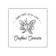 Diese spezielle "Hand aus Liebe" Gummi-Briefmarke verfügt über einen Schmetterling mit eigenem Firmennamen.