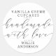Handgefertigt mit Liebe Handgeschriebenes Script Business Classic Round Sticker. Passen Sie Ihr Produkt und Ihren Namen an, um das passende Etikett für Ihre kleinen Geschäftsanforderungen zu erstellen.