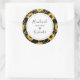 Handgefertigt mit Liebe Aufklebern mit elegantem und stilvollem Muster. Hübsche gelbe Sonnenblumen und grüne Blätter umgeben von zarten Goldketten. Schwarzer Hintergrund. Ein Kreis mit einem Imitat, der mit einem goldenen Rahmen überlagert ist, in dem sich der personalisierte Text befindet.