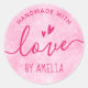 Handgefertigt mit Liebe individuelle Name rosa Runder Aufkleber