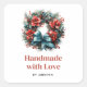 Handgefertigt mit Liebe Kiefer mit Holly Quadratischer Aufkleber