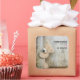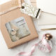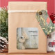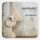 Handgefertigt mit Liebe Aufklebern mit einem lieblichen Foto eines niedlichen gestopften Bären, stehend von einer rustikalen Holzwand / Kulisse.