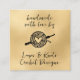 Diese modernen und dennoch klassischen 2,5 x 2,5 Goldfolienkarten mit Ihrem Firmennamen in einem schönen Script-Schriftart, eine schwarze Garnkugel mit Herzzentrum und ein Häkelhaken vorne und Ihre Kontaktinformationen und Waschanleitungen mit einem Häkelhaken auf der Rückseite wären perfekt, um sie auf Handwerksmessen oder beim Versand von Online-Bestellungen an Kunden zu verpacken. Sehr einfach, um sich selbst zu machen.
