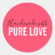 Handgefertigt mit Liebe-Rosa-Typografie Runder Aufkleber