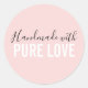 Handgefertigt mit Liebe-Rosa-Typografie Runder Aufkleber