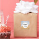 Handgefertigt mit Liebe-Aufklebern mit einem Foto eines goldbraunen Sandstrandes mit weißer, schäumender Brandung.