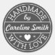 Handgefertigt mit personalisierter Liebe, dunkelgr Runder Aufkleber