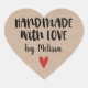 Ein personalisierter rustikaler Aufkleber in Herzform "handgefertigt mit Liebe" auf kraftfarbenem Hintergrund. Machen Sie es Ihren, indem Sie Ihren eigenen Namen hinzufügen. Eine hübsche Touch für alle Ihre handgefertigten Geschenke. Entworfen für Sie von BlackBerry Boulevard.