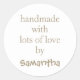 Handgefertigt mit vielen Lieben nach Name Champagn Runder Aufkleber