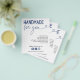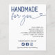 Waschanleitung Einsteckkarte für Ihr kleines Geschäft mit handgefertigten Waren. Handgemacht für Sie in einer bezaubernden Kombination aus Vintagem Schriftart und Skript mit einem Herz in marineblau. Fügen Sie eine Waschanleitung in schwarz hinzu. Unter den marineblauen blauen Social Media Icons handhaben Sie Ihre Social Media. Fügen Sie auf der Rückseite ein Foto zur Werbeaktion hinzu.