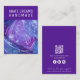 Schmuckkarten mit lila Galaxie-Agatheme-Thema! Enthält Ihren Namen sans-serif Typografie mit vollständig bearbeitbarem Text auf beiden Seiten. Diese Visitenkarte ist einfach zu machen und voll von Möglichkeiten, um Ihr Unternehmen anzupassen, einschließlich qr-Code, Website und Social Media-Display, vielen Dank, Anruf zum Handeln, und optionale Zimmer, um Schmuckstil auf der Rückseite. Enthält Vorlagenlöcher und Schnittlinien für Ohrringe und Halskette. *** Keine vorgeschnittenen Löcher. *** Verwenden Sie eine Alu und eine Klinge, um Löcher und Schlitze für Schmuck vorzuschneiden. Halsketten um die Karte ziehen und zum Schutz an der Rückseite befestigen.