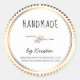 Rustikale, schicke Aufkleber für Ihr handgefertigtes, handgefertigtes oder handwerkliches Handwerk verfügen über einen goldenen Rahmen mit Ihrem Namen und/oder Firmennamen in schwarz handgeschriebenem Styling und Schriftzeichen, hervorgehoben mit einer Blume-Illustration. Personalisieren Sie sich mit zwei Zeilen Kontaktdaten und Ihrem Benutzernamen