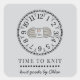 Niedliches illustriertes Strickgarn und Werkzeuge, graues Firmenlabel, mit rosa Herz, handgefertigt mit Liebe und Ihrem Namen oder Firmennamen. Erdreich boho vibe.