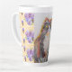 Handgemalt Gelb Tuxedo Katzenblüte Latte Tasse. Ein herrlicher Farbstift zeichnend & Aquarellblumen-Design. Entworfen aus meinen ursprünglichen Aquarellbildern, die ich aus meinem eigenen Blumengarten gemalt habe.
