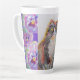 Handgemalte Lila Tuxedo Katze floral Latte Tasse. Ein wunderschönes Blumendesign in Aquarelltönen. Entworfen aus meinen ursprünglichen Aquarellbildern, die ich aus meinem eigenen Blumengarten gemalt habe.