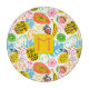 Auf diesem runden Glasschneidbrett mit modernem Obstmuster aus Ananas, Birnen, Orangen, Kirschen, Papaya, Trauben, Kiwis und Pfirsichen ist Ihr Monogramm-Initial zu sehen. PASSENDE Artikel in unserer Sammlung.