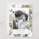 Mit dieser Save the Date-Karte, die mit einem weichen Aquarellrahmen und einem zentrierten Foto gestaltet ist, können Sie Ihre Hochzeit mit romantischem Charme feiern. Die handbemalten Blume in lila, grünen und blauen Farbtönen verleihen dem Gärten eine frische Atmosphäre und eignen sich ideal für Hochzeiten im Frühjahr oder Sommer, für Blumenfeiern oder für romantische Outdoor-Veranstaltungen. Personalisieren Sie sich einfach mit Ihrem bevorzugten Foto, Namen, Datum und Ort für eine aussagekräftige, einmalige Ankündigung.