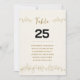 Diese Tischnummer ist ein Muss für Ihre Hochzeitsfeier. Das Design besteht aus handbemalten goldfarbenen Blätter und Blume mit einem skurrilen Design und einer anpassbaren schwarz-goldenen Typografie auf einem cremefarbenen Papiergrundstück.