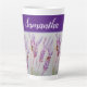 Handgemalte Lavendel Blume und Bienenkollektor Art latte Tasse, mit einem vollständig anpassbaren Namen. Entworfen aus meinem ursprünglichen Garten Aquarellmalerei.