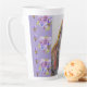 Handgemalte Lila Tuxedo Katzenblume Latte Tasse. Ein herrliches Blumendesign in Aquarell. Entworfen aus meinen ursprünglichen Aquarellmalereien, die ich aus meinem eigenen Blumengarten gemalt habe.