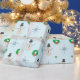 Mein handgemaltes Strick-Design wurde digital verändert, um eine winterliche Wunderlandschaft mit Schneeflocken und Kränzen zu schaffen.