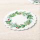Handgemalte Aquarellkunst schmückt diesen Weihnachtskranz-Untersetzer. Die zahlreichen grünen Blätter und Kiefern sowie die reichen roten Beeren machen dieses Design zu einem idealen Ort für jede Dekoration. Personalisieren oder anpassen Sie dieses Design.