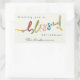 Dieser Weihnachtsgrüßaufkleber zeigt das farbenfrohe, handgemalte Wort "gesegnet" mit schönen künstlerischen Details. Es ist Teil einer passenden Sammlung von Weihnachts-Foto-Grußkarten, Aufklebern, Adresse- und Rücketiketten, sowie Ornamente.