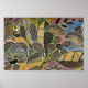 Handgeschnitzte Blätter und Blume - in Orange Blue Poster