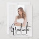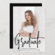 Moderne Graduate Party Einladung mit Ihrem vertikalen Foto auf der Vorderseite mit "Graduate" in einem handgeschriebenen schwarzen Skript-Overlay angezeigt. Personalisieren Sie die Front der Foto Graduation Party einladen mit dem Namen des Absolventen, Schulname und Abschluss Jahr. Die Einladung zur Graduierungsparty kehrt um, um Ihre Party-Details in weißer Schrift mit einem soliden schwarzen Hintergrund darzustellen. Die Foto-Abschlussfeier lädt sowohl für Absolventen der Highschool als auch für Unis ein!