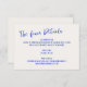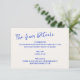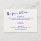 Quirky und lustige Hochzeitsdetails Gehäuse Karte mit lässigen handgeschriebenen Schriftart in Kobalt blau auf ecru.