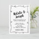 Diese Einladung ist perfekt für Ihre Hochzeit, wenn Sie eine elegante, einzigartige und leicht bearbeitbare Einladung suchen. Eine elegante, einfache, minimalistische Schwarz-Weiß-Hochzeitsvorlage Einladung. Das ist mit schlichtem, weißem Hintergrund auf der Vorderseite und handgezeichnetem Rahmen versehen. Und schwarze Hand geschrieben whimsical Braut's und Bräutigam Vornamen. und bearbeitbare Infos . Erschwinglich und es ist auch digitale elektronische E-Einladung, wenn Sie gewollt, es per Text oder E-Mail zu senden. Alle Informationen können durch Anklicken des Buttons Personalisieren angepasst werden. So packen Sie es und machen Sie es zu Ihrem, sodass Sie verlobt und aufgeregt einladen .