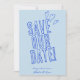 Dieses moderne & Retro funky minimalistische Wedding Save The Date Template ist ideal für Sie. Wenn Sie nach einer hübschen, eleganten und leicht anpassbaren Hochzeit suchen, speichern Sie die Datumsvorlage. Eine sehr elegante, einfache blaue Skript Hochzeit speichern das Datum. Das minimale Blau Save the Date auf einem schlichten himmelblauen, sauberen Hintergrund. Und handgezeichnet gekreuzte Herzen symbolisieren für den Spaß und die Liebe zu kommen. Genießen Sie dieses stilvolle Hochzeitsfest, speichern Sie das Datum und machen Sie Ihre Einladungen wirklich verlobt.