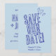 Dieses moderne & Retro funky minimalistische Wedding Save The Date Template ist ideal für Sie. Wenn Sie nach einer hübschen, eleganten und leicht anpassbaren Hochzeit suchen, speichern Sie die Datumsvorlage. Eine sehr elegante, einfache blaue Skript Hochzeit speichern das Datum. Das minimale Blau Save the Date auf einem schlichten himmelblauen, sauberen Hintergrund. Und handgezeichnet gekreuzte Herzen symbolisieren für den Spaß und die Liebe zu kommen. Genießen Sie dieses stilvolle Hochzeitsfest, speichern Sie das Datum und machen Sie Ihre Einladungen wirklich verlobt.