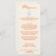 Ein buntes Retro funky modernes, lebendiges rotes Hochzeitsmenü. Das elegante Template-Design von boho Vintag milchig beige Hintergrund und orange Typografie und handgeschriebenes Menü in Orange. Und handgezeichnetes Champagnerglas und Flasche in himmelblauer Farbe. . Perfekt und passend zu der ganzen Suite.
