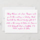 Die Einzelheiten der Hochzeit sind in handgeschriebenem Stil aufgeführt, heißen rosa Text. Die Rückseite der Einladung ist ein massives, heißes Rosa mit weißem Text für das Datum.