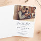 Modernes und elegantes handgeschriebenes Skript-Foto Save the Date Hochzeitskarte. Unsere Ankündigung Datum freihalten-Karte zeichnet sich durch moderne Typografie und eine schicke und stilvolle Gestaltung aus. Die Karte zeichnet sich durch ein wirtschaftliches und elegantes Design aus, das sich von der Masse abhebt und von allen Empfängern geschätzt wird.