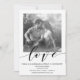 Elegante Schwarz-Weiß-Einladungskarte mit Ihrem individuellen Foto und Liebe-Text. Foto: href="http://www.freepik.com/free-photo/couple-sitting-on-grass-looking-at-each-other-s-eyes_986398.htm">Von Freepik entworfen