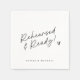 Probe Dinner Napkins: Diese trendigen, modernen Dinner-Servietten für Hochzeitsfeiern mit Probe enthalten den spielerischen Satz "Rehearsed & Ready" in einer romantischen Handschrift im Stil einer Liebe, die durch ein süßes Herzdesign betont wird. Die eleganten Schwarz-Weiß-Farbtöne verleihen Ihrem Probe-Dinner eine stilvolle und unterhaltsame Touch, die sich perfekt für Paare eignet, die Eleganz mit einem Hauch von Charme und Persönlichkeit verbinden möchten.