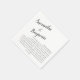 Diese modernen, kreativen und minimalistischen Fun Facts über die Braut und Bräutigam Hochzeitscocktail Servietten werden Ihre Gäste mit lustigen und interessanten Informationen über Ihre Liebe und Persönlichkeiten unterhalten. Das schlichte, aber elegante Schwarzweiß-Design beinhaltet Ihre Namen in handgeschriebenem Kalligrafieschrift und Ihre lustigen Fakten in einem stilvollen und leicht lesbaren Serif-Schriftart mit Vintagem Ambiente. Wenn Sie Hilfe bei der Anpassung dieses Produkts benötigen oder möchten, dass ich zusätzliche, passende Artikel erstelle, kontaktieren Sie mich bitte unter dawn@albamarie.com. Ich helfe Ihnen gerne!