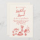 Wenn Sie eine elegante und leicht bearbeitbare, einzigartige Geburtstagsbrunch-Einladung suchen, ist diese für Sie perfekt. Wie Sie sehen, enthält es rote handgeschriebene Skripte mit whimsical BRUNCH BIRTHDAY auf cremefarbenem Hintergrund. Mit farbenfroher roter Hand gezeichnete TABLEWARE von Wein, Trauben, Pfannkuchen, Blumenstrauß, Tee und Kuchen. Mit UAWG auf der Rückseite. Mit kompletten Informationen, die durch Anklicken des Buttons Personalisieren leicht angepasst werden können. Diese seltsame und einzigartige trendige Geburtstagseinladung ist auch digitale e-Einladung, wenn Sie gewollt haben, es per E-Mail oder Text zu senden. So packen Sie es und machen Sie Ihre Einladungen wirklich verlobt.