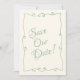 Dieses moderne & Retro funky minimalistische Wedding Save The Date Template ist ideal für Sie. Wenn Sie nach einer hübschen, eleganten und leicht anpassbaren Hochzeit suchen, speichern Sie die Datumsvorlage. Eine sehr elegante und einzigartige einfache Vorlage . Das ist Vintag milchig beige im Hintergrund. Mit whimsical handgeschriebenen Minze Salbei grün Text Layout und handgeschriebene Kalligraphie. Genießen Sie dieses stilvolle Hochzeitsfest, speichern Sie das Datum und machen Sie Ihre Einladungen wirklich verlobt.