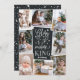 Die schöne typografische Weihnachtsfotokarte zeigt acht Ihrer beliebtesten Fotos, die in einer Collage angeordnet sind. "Ruhm für den Neugeborenen" erscheint in der Mitte in weißer Hand mit Schriftzeichen auf einem modernen kohlegrauen Chalkboard-Hintergrund mit festlichen Sternen. Personalisieren Sie Ihre Daten mit Ihrem Familiennamen unten.