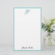 Handgeschriebene Skript-Monogramm-Namen-einfache moderne Schablonen-personalisiertes blaues Grün-weißes Briefpapier-Papier.