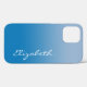 Der Farbverlauf von Licht bis Dunkelblau zeigt einen individuelle Name in einem handgeschriebenen, stylischen, weißen Skript, das rechts nach oben geht. Personalisieren Sie es mit Ihrem Namen oder Text in der Sidebar. Weitere Gehäusetypen und Modelle sind auch in der Sidebar erhältlich. Um das chic sky blue ombré Design auf anderen Gegenständen zu sehen, klicken Sie auf den Link "Rocklawn Arts". © Claire E. Skinner, Alle Rechte vorbehalten.