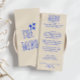 Ein buntes Retro-funky modernes Periwinkle Hochzeitsmenü. Das Design der schicken Vorlage boho Vintag beige cremiger Hintergrund und blau Typografie und handgeschriebenes Menü in blau . Und heller Hintergrund. Perfekt und passend zu der ganzen Suite.