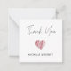Kleines handgeschriebenes kalligrafisches Rotes Herz Hochzeit Danke in Schwarz und Weiß mit personalisierter Botschaft auf der Rückseite.