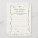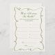 Quirkisch und whimsical "Wie alt war die Braut?" Spielkarte mit einem grünen handgeschriebenen Schriftart mit einem grünen Ecken-Rahmen und vollständig anpassbarem Text. Die herunterladbare Spielkarte ist in einem neutralen Farbschema aus grün und ecru erhältlich.