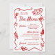 Handgeschriebenes Illustriertes Wavy Border Whimsical Menu Dieses Ereignismenü enthält handgeschriebenen Schriftart und handgezeichnete Grafiken mit einem wachsartigen Rahmen. Ideal für Brautparty, Hochzeit, Geburtstagsfeier oder Probe! Text- und Grafikfarbe ist editierbar.